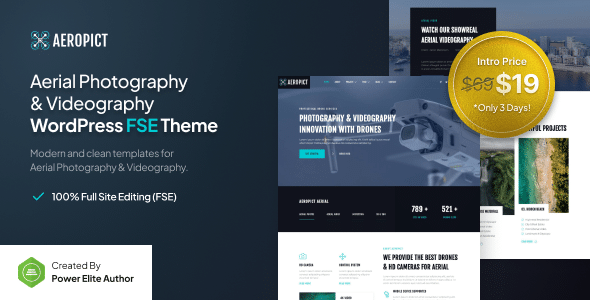Aeropict is a modern and clean design WordPress theme built especially for Drone Aerial Photography and Videography, as well as it fits perfectly for Film Maker, Movie Studio, Production House, Videography, Photography, Creative Agency, and any related business. Fully compatible with the WordPress block editor, Aeropict makes customization effortless and provides all the essential tools to build a website that perfectly represents your business.
