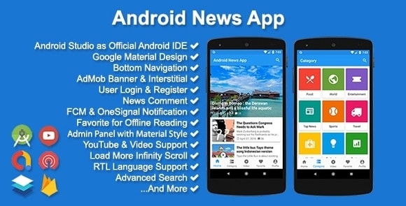 Android News App v4.1.0 – Nulled Codecanyon Apps Source Code Free Download. It’s Mobile News System which Run Under Android Studio Platform that used for Own News or Magazine Application. Integrated with Web Admin Panel to Manage News, Category, Notification and Everything you want Admin Panel side Developed using PHP and MySQL Database.