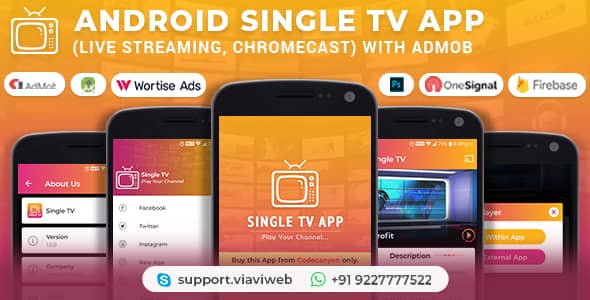 Single Tv Application is app that show live tv on android device. Watch your favorite TV channels Live in your mobile phone with this Android application on your Android device. that support almost all formats.The application is specially optimized to be extremely easy to configure and detailed documentation is provided.
