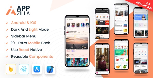AppZilla v1.3 Nulled – Mobile React Native UI KIT Elements Andriod + iOS