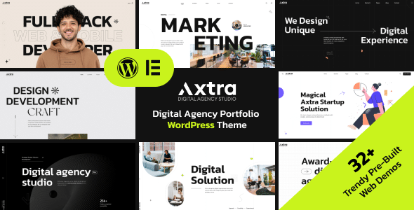 Axtra is the all-in-one Agency and portfolio showcase builder with ultra-high performance, exclusive features, and an award-winning design collection. It includes 32+ pre-built demos, 200+ section templates, and 50+ inner pages.