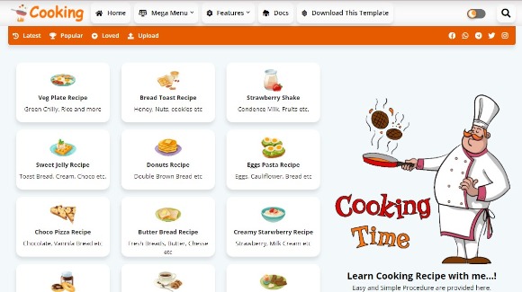 Cooking – Recipe and Food Blogger Template Free Download. Cooking blogger template is the best template for blogger platform with SEO friendly and AdSense friendly This Template is Advanced level with its Features and Quality and clean look Cooking blogger Template has been made for Chef and Recipe lovers Bloggers.