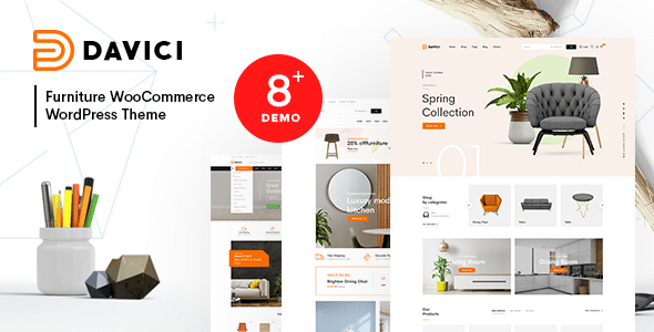 Davici by Wpbingo is a strong WP theme for Furniture WooCommerce stores. It uses the latest version of Bootstrap as the back-end framework, and you’ll easily find the design of this theme impressive and suitable for your store. Davici puts a lot of emphasis on aligning products based on their categories. Yet it also highlights how certain web components. A Design that integrates components to highlight special products.