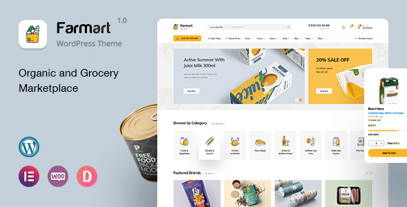 Farmart is a modern and flexible Organic Marketplace WordPress theme. This theme is suited for organic and grocery store, furnitures store, clothings store, hitech store and accessories store… With the theme, you can create your own marketplace and allow vendors to sell just like Amazon, Envato, eBay.