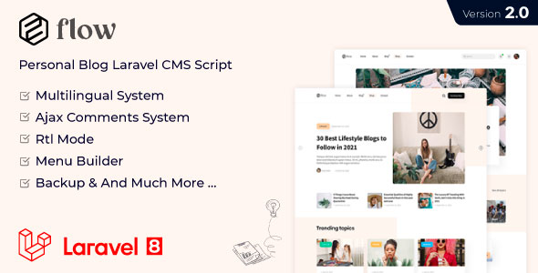Flow is a clean and minimal Laravel blog script for perfect for writers who need to create personal blog site with simple creative features and effects to make readers feel the pleasure of reading blog posts and articles.