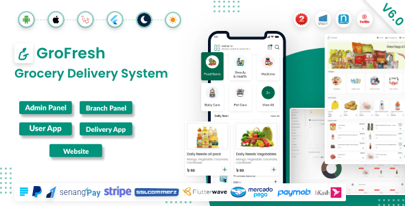 GroFresh v7.5 Nulled – (Grocery, Pharmacy, eCommerce, Store) App and Web with Laravel Admin Panel + Delivery App