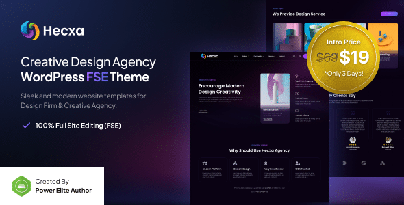Hecxa is a modern WordPress theme designed for Design Firm, Design Studio, Graphic Designer, Web Developer, Freelancer, Portfolio and Creative Agency. Fully compatible with the block editor, Hecxa offers advanced features that are easy to customize, perfectly suited for your business needs.