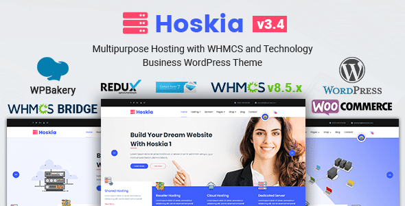 Hoskia is a Multipurpose Hosting with WHMCS and Technology Business WordPress Theme. It’s designed for All kinds of Hosting, Domain, Voip, Cloud Service and Technology Business. Fully Compatible with WHMCS Bridge Also included a custom WHMCS template based on WHMCS v8.5.x to use separately. Hoskia is a theme for technology and software businesses as well as for VOIP and web hosting companies based on Visual Composer.