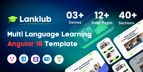 Lanklub is a clean professional Multipurpose Language Learning Angular 18 Template that fits all kinds of Language Learning, Academy, LMS, Online Learning, etc website