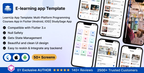 LearnUp app UI Template is a sleek, modern template designed for online Learning App. Built using the Flutter 3.x framework, this template is fully customisable and can create beautiful and intuitive apps for Android and iOS platforms.