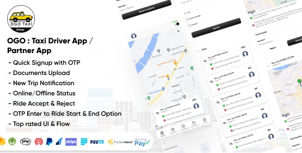 Cab Driver can signup with OTP Cab Driver can upload all required documents for KYC Cab Driver can check all the Normal Pending Trips / Running Trips / Completed Trips list and details Cab Driver can Track the path for User