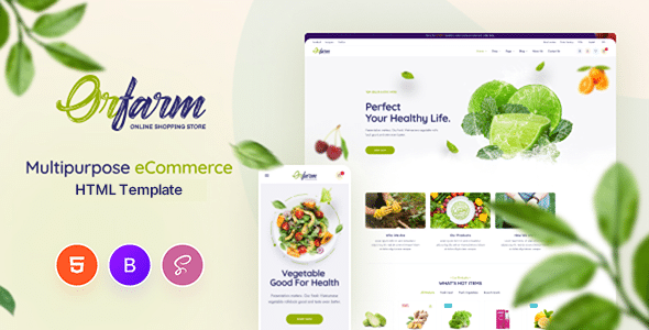 Orfarm is an attractive HTML Bootstrap 5.x template specially designed for the multipurpose shops like mega store, grocery store, supermarket, organic shop, and online stores selling products like beverages, vegetables, fruits, ice creams, paste, herbs, juice, meat, cold drinks, sausages, C*c*tails, soft drinks, cookies…
