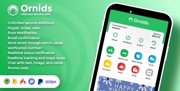Ornids – Multi Service App With Customer App, Driver App, Merchant App and Admin Panel Source Code By Ourdevelops on Codecanyon Scripts Free Download.