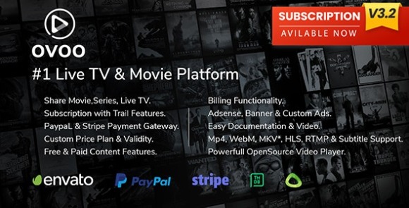 OVOO v3.2.7 Nulled – Live TV & Movie Portal CMS with Membership System Script