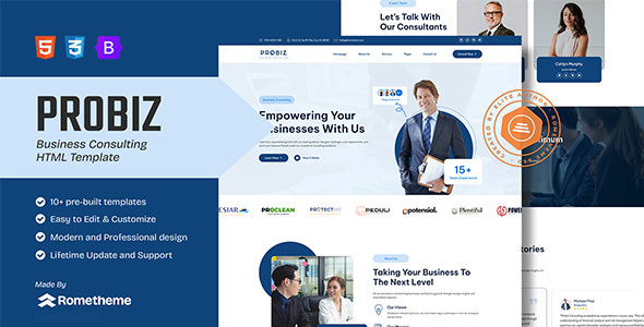 Probiz is a modern, sleek, and fully responsive HTML template specifically crafted for businesses and professionals in industries like accounting, consulting, finance, marketing, startups, agencies, and more.