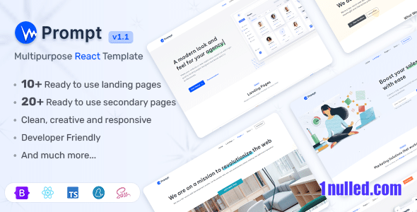 Prompt is a fully-featured modern multi-purpose template built on top of awesome React and Bootstrap 5.1.3. It’s for building responsive, mobile-first landing pages, websites with Bootstrap. The clean and well-commented code allows you to easily customize it. You can simply update its contents, images, and scss according to your company info. Prompt has 10 different types of landings, which are quite enough for your business.