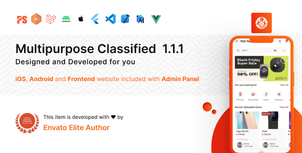“PSX Multi Purpose Classified Flutter App with Laravel Admin Panel” which is using Flutter(for mobile app) and Laravel(for admin panel). It included a Mobile Project and Backend Admin panel. Our item is a full application with the admin panel so users are able to change and manage dynamically from the admin panel.