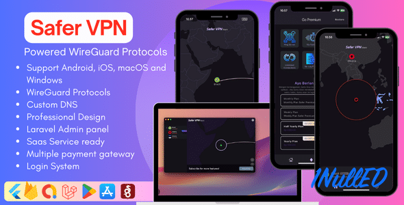Safer VPN App for Android, iOS, macOS and Windows, seamlessly integrated with the new backend Admin Panel, WireGuard Protocols, and rest api wireguard. This apps is finely tuned and production-ready, requiring only the configuration of your details for a smooth release on your Google Play Store or Apple Store account.