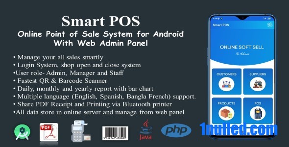 Smart POS is an online-based point-of-sale system for Android devices with a Web Admin panel to manage the pos system. It is a very useful online point-of-sale system for android mobile devices or tablets. By using Smart POS, you can easily maintain all kinds of products and sales records. You can store customer and supplier information. You can easily see your daily, weekly, monthly, and yearly reports with a bar chart. Smart POS has multiple languages (English, Spanish, Bangla, French) facilities. You can sell products from an Android device or tablet and manage the pos system from the web panel. All data is stored on an online server. There are three types of users- Admin, Manager, and Staff. Also, have user access limitations. You can manage your sales smartly from any time anywhere.