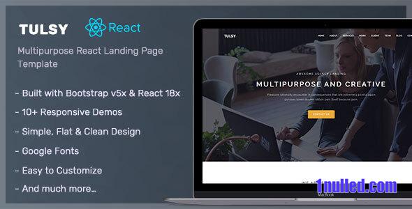 Tulsy is a fully responsive multipurpose landing page pack built on Bootstrap v5.3.0, React Js. It was designed to promote your business, agencies, startup, showcase app, book landing or corporate web site.