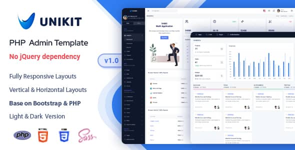 Unikit is a fully featured premium admin dashboard template in PHP 7.4 with developer-friendly codes and Multi-Lingual support and few reusable components.