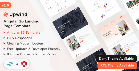 Upwind Nulled – Angular 16 Landing Template (Tailwind CSS + Angular 16)