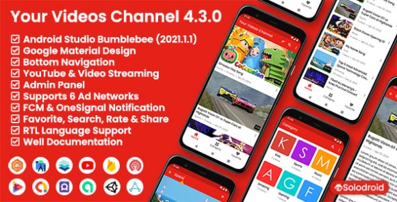 Your Videos Channel v4.3.0 App Source Code with Admin Panel Free Download. Your YouTube Video Channel is a Mobile Video System which Run under Android platform that Used for your own Video Channel Application. With Powerful and Responsive Admin Panel to Manage Upload Video, Unlimited Category, Video Source from YouTube, also can Change admin Username and Password.